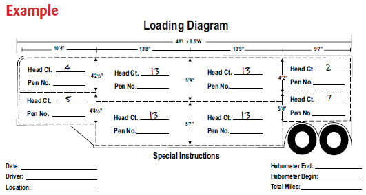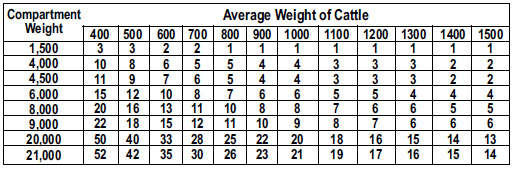 Approximate weight and size of cattle and head count are needed to estimate the number of cattle per compartment to load the trailer properly.