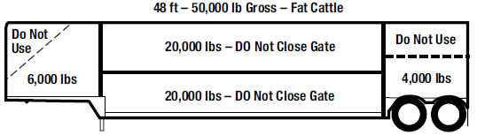 The values presented in this document are recommendations only. It is the driver’s responsibility to know the dimensions of the trailer, to load only the size of cattle that will safely and humanely fit the trailer and to adhere to the maximum legal load limit for the states in which they are operating.