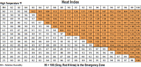 Extreme heat conditions exist when temperature and humidity are at levels in which they create a heat index greater than or equal to 100ºF.